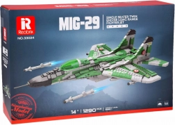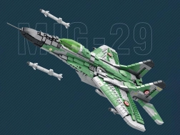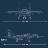 Ten szczegółowy model MiG‑29 w szaro‑zielonym, wojskowym kamuflażu wiernie oddaje charakterystyczne skrzydła, podwójne stateczniki pionowe oraz realistyczne wloty powietrza dwusilnikowej konstrukcji. Dzięki imponującym wymiarom stanie się efektowną ozdobą półki i atrakcyjną układanką dla bardziej wymagających konstruktorów od 14. roku życia.