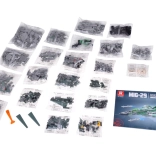 W zestawie znajduje się wiele woreczków z elementami oraz przejrzysta instrukcja MiG‑29. Budowa jest płynna i czytelna od początku do końca.