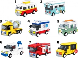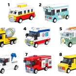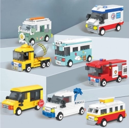 W ofercie znajdują się popularne pojazdy miejskie i budowlane: tramwaj, autobus, autobus szkolny, karetka, wóz strażacki, traktor, betoniarka oraz kamper/van. Każdy model to osobny zestaw z ilustrowaną instrukcją, dzięki czemu nadaje się także dla początkujących konstruktorów.