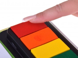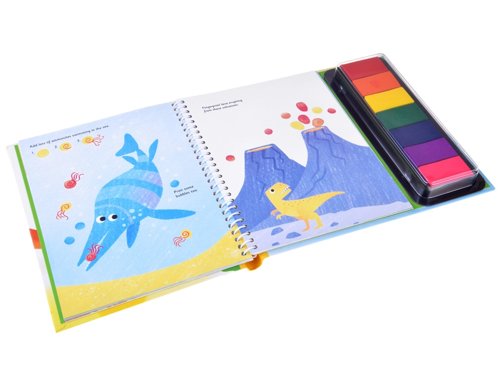 Zintegrowana paletka z 7 jaskrawymi kolorami i miękkimi poduszeczkami ułatwia odbijanie bez bałaganu. Wystarczy zanurzyć palec i tworzyć.
