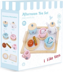 Zawiera wszystko, co potrzebne do stylowego poczęstunku: dzbanek z pokrywką, cukiernicę, dzbanuszek na mleko, 2 filiżanki ze spodkami i łyżeczkami, tacę oraz małe „smakołyki”. Zabawa naturalnie rozwija motorykę małą, koordynację i współpracę, a także uczy dzielenia się i etykiety przy stole.