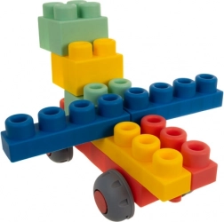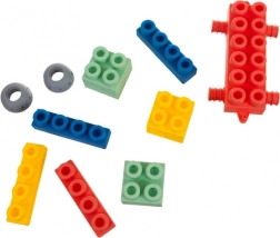 Kolorowe elementy z wyraźnymi wypustkami łatwo trzymać i łączyć. Dzieci ćwiczą małą motorykę, koordynację ręka–oko oraz rozwijają wyobraźnię.