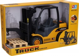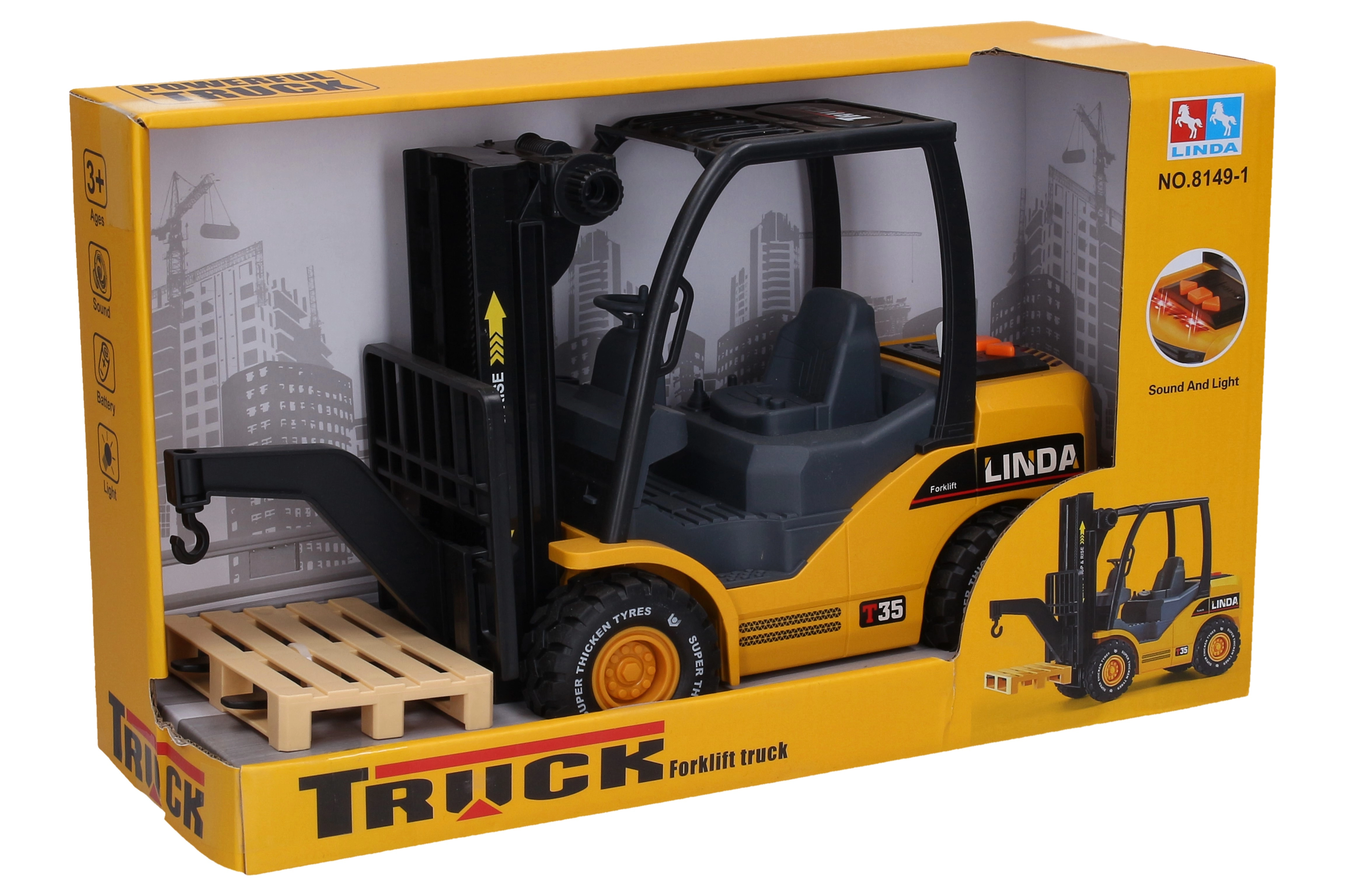 Ten szczegółowo wykonany wózek widłowy ucieszy małych miłośników maszyn budowlanych i magazynowych. Dzięki efektom świetlnym i dźwiękowym (silnik, podnoszenie, klakson) oraz ręcznemu podnoszeniu przednim pokrętłem, podczas zabawy sprawia bardzo realistyczne wrażenie. Aktywacja efektów odbywa się przyciskami z tyłu, więc wszystko jest wygodnie pod ręką.