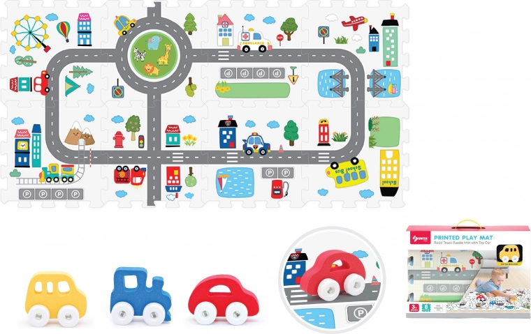 Odkryj kreatywny zestaw dla małych budowniczych: miękkie piankowe bloki z motywem miasta oraz autko z wolno obracającymi się kołami. Zestaw zawiera 8 dużych elementów 31,5 × 31,5 × 1 cm, które są bezpieczne, lekkie i łatwe do mycia – idealne do zabawy w domu i w przedszkolu.