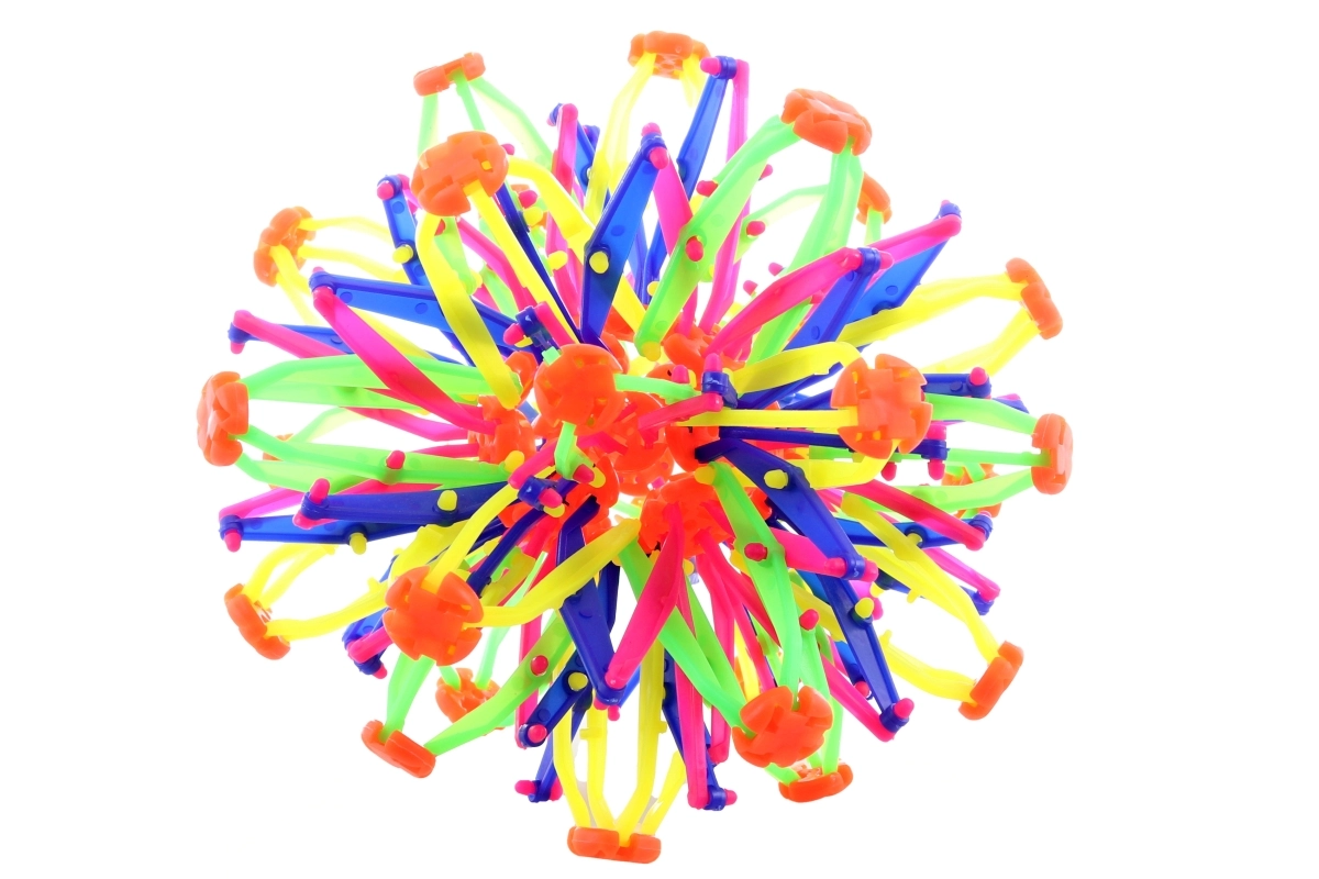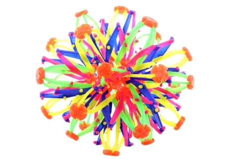 Ta kolorowa składana piłka z lekkiego plastiku zaciekawi zarówno dzieci, jak i dorosłych. Dzięki przemyślanej konstrukcji łatwo się rozciąga i kurczy, co czyni ją świetną zabawką antystresową oraz pomocą do rozwoju motoryki i percepcji przestrzennej. Gładkie końcówki prętów i płynne przeguby zapewniają bezpieczną i przyjemną manipulację.