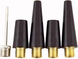 Zestaw nasadek, w tym zawór igłowy i stożkowe dysze, obejmuje pompowanie piłek, zabawek i materacy – wystarczy przykręcić i zacząć.