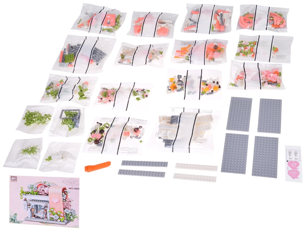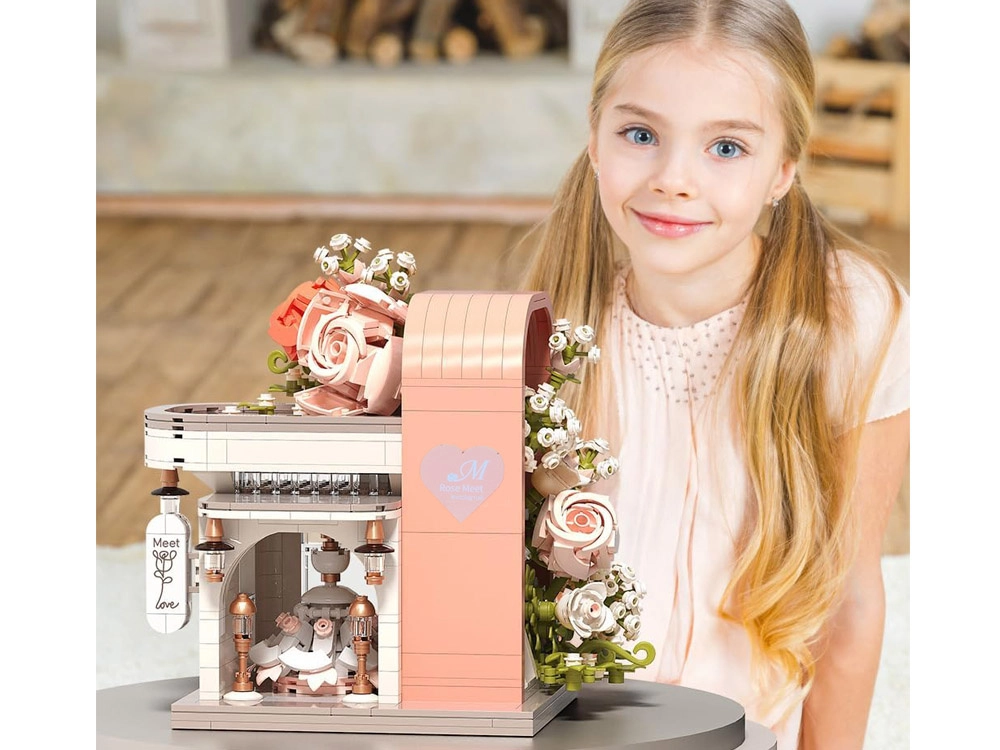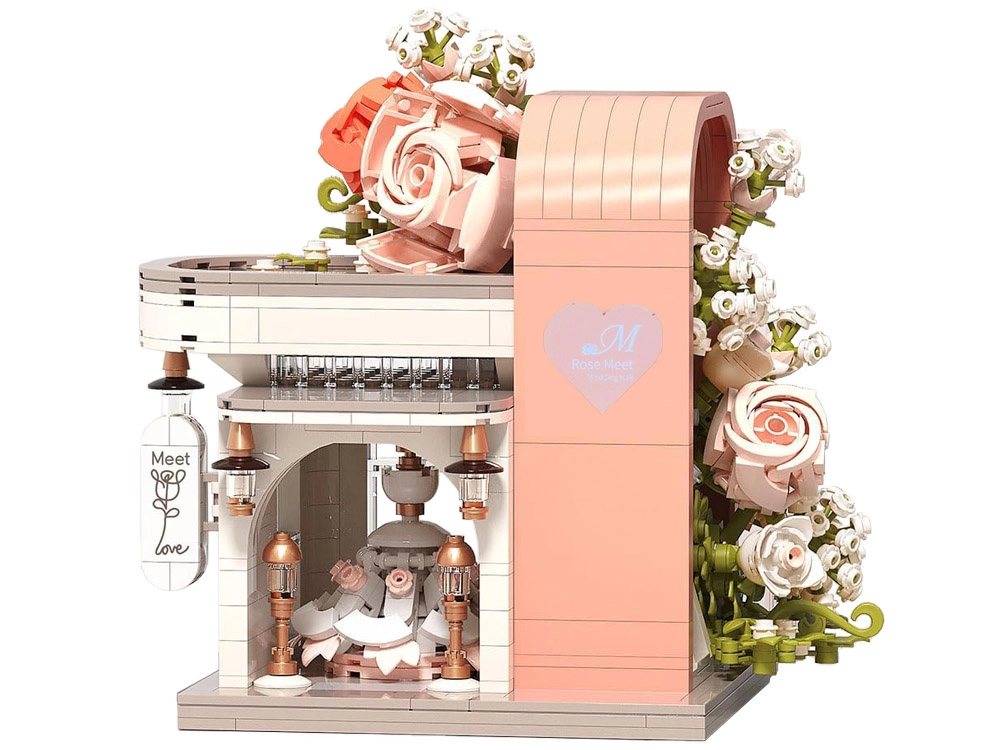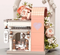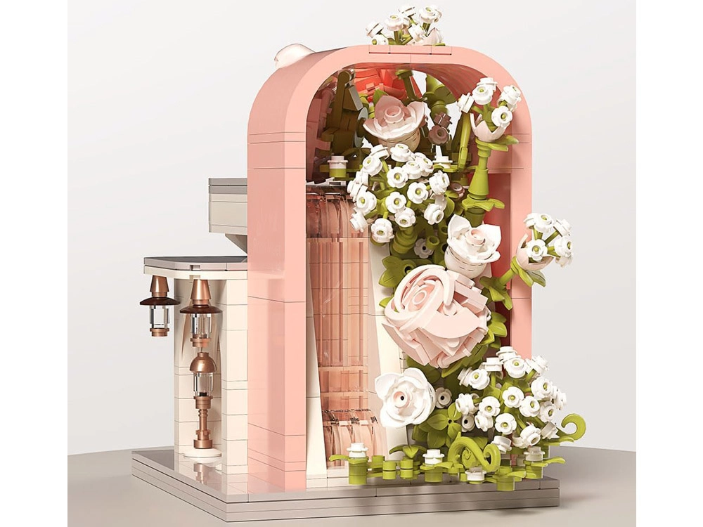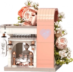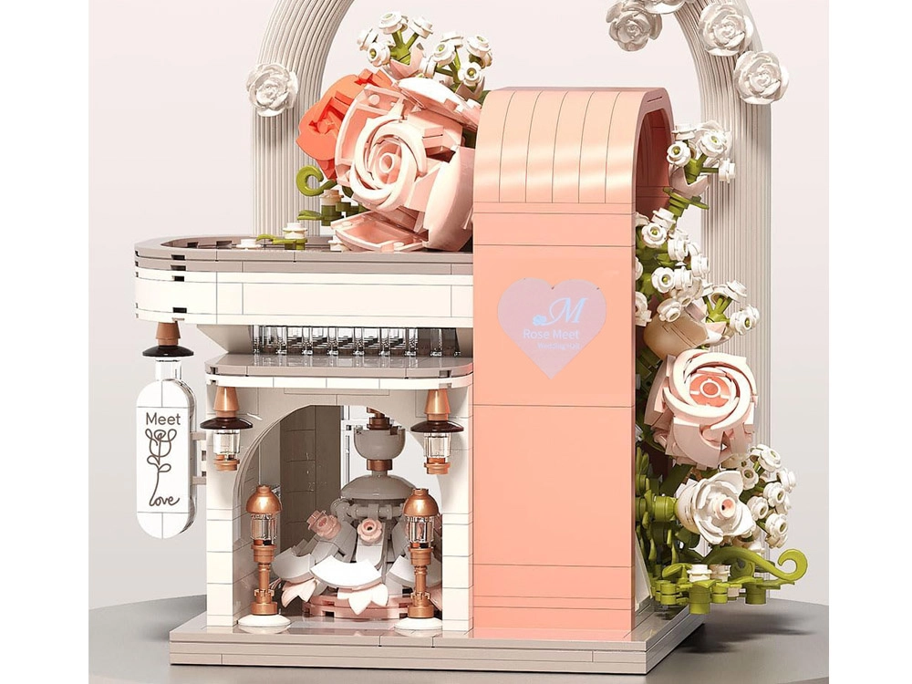 Odkryj czarującą budowlę inspirowaną salonem ślubnym, zachwycającą pastelowymi kolorami, dopracowaną witryną i bogatą kwiatową dekoracją. W środku znajdziesz „przeszklony” front z wyeksponowaną suknią ślubną, subtelne różowe akcenty oraz mnóstwo kwiatowych detali. Zestaw oferuje 1047 elementów, przejrzystą instrukcję obrazkową i świetnie sprawdzi się zarówno do zabawy, jak i jako dekoracja pokoju.