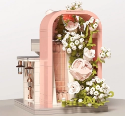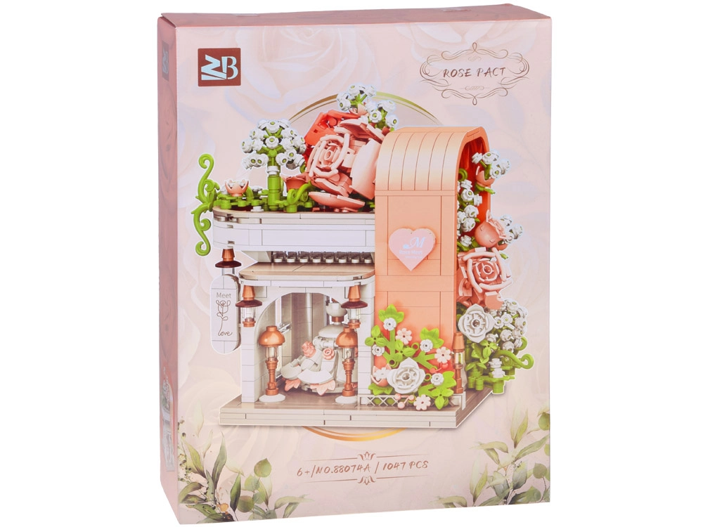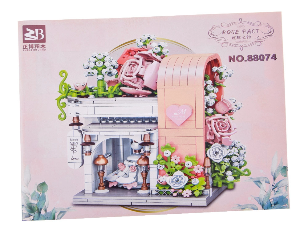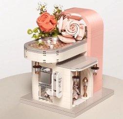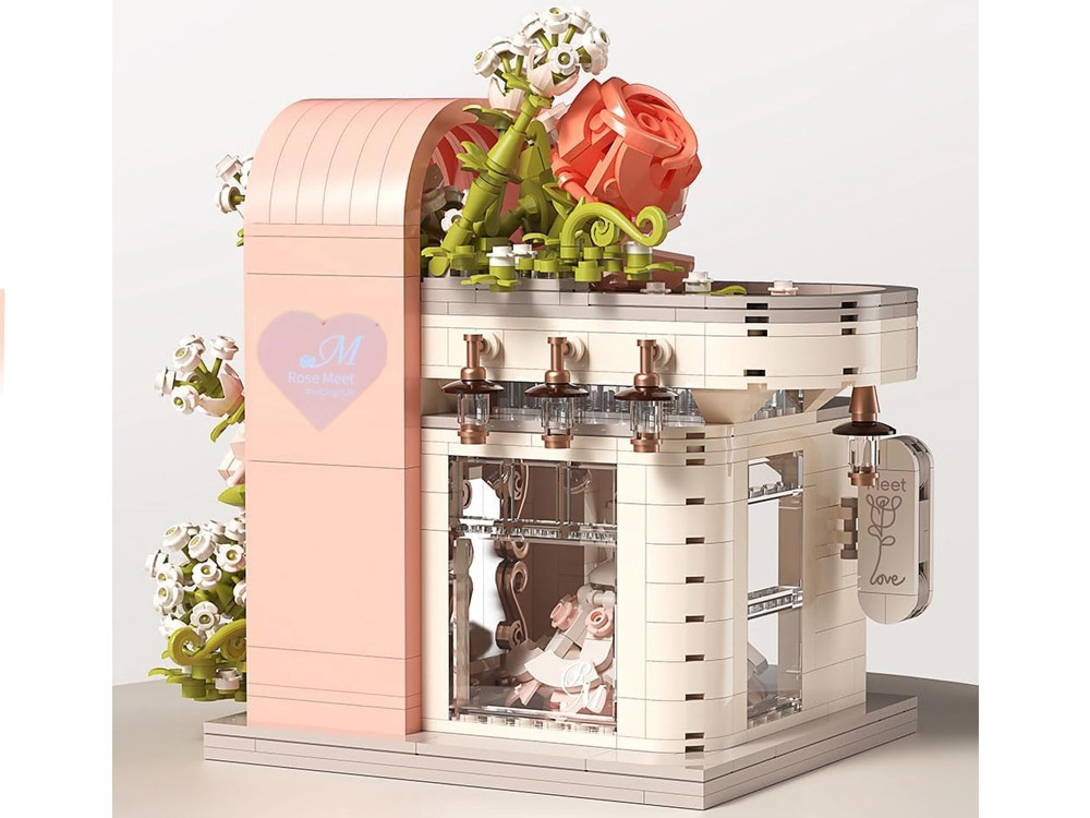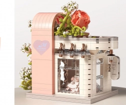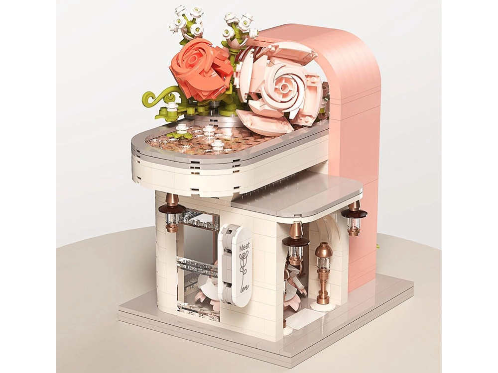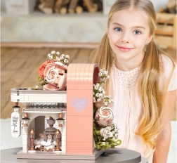 Odkryj czarującą budowlę inspirowaną salonem ślubnym, zachwycającą pastelowymi kolorami, dopracowaną witryną i bogatą kwiatową dekoracją. W środku znajdziesz „przeszklony” front z wyeksponowaną suknią ślubną, subtelne różowe akcenty oraz mnóstwo kwiatowych detali. Zestaw oferuje 1047 elementów, przejrzystą instrukcję obrazkową i świetnie sprawdzi się zarówno do zabawy, jak i jako dekoracja pokoju.