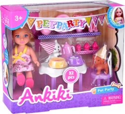 Zestaw Ankiki Pet Party zamieni każdy dzień w radosne urodzinowe przyjęcie. Dzieci mogą posadzić lalkę przy stoliku, podać herbatę z różowego serwisu, rozdzielić smakołyki i babeczki oraz zaopiekować się dwoma uroczymi pupilami – białą kotką i brązowym pieskiem. Pastelowe barwy i przyjazny design pobudzają wyobraźnię i tworzą łagodną atmosferę zabawy.