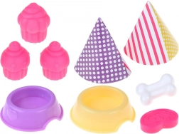 W komplecie znajduje się szeroki wybór akcesoriów, które pozwalają dzieciom tworzyć wciąż nowe historie: od stolika i krzesełek, przez miski dla zwierzątek, sztućce i naczynia, aż po papierowe czapeczki imprezowe. Wszystko jest lekkie, dopasowane do dziecięcych rąk i przygotowane na długie godziny zabaw w odgrywanie ról.