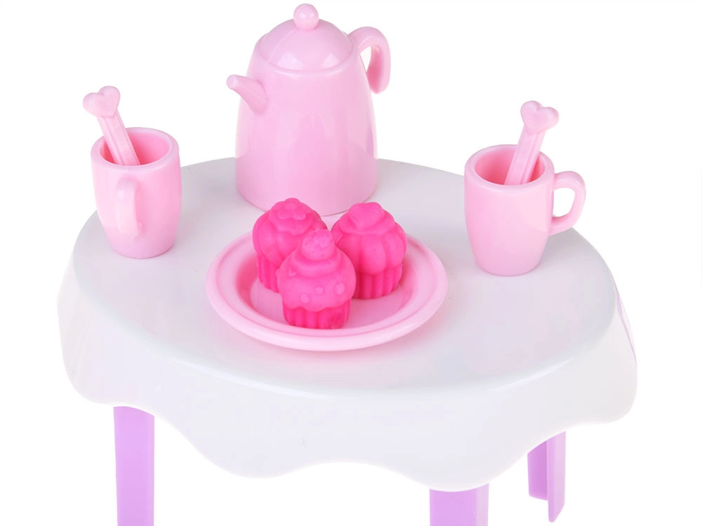 Od stolika i krzesełek po różowy serwis herbaciany, talerzyki i sztućce – wszystko, czego dzieci potrzebują, by zorganizować idealne przyjęcie.