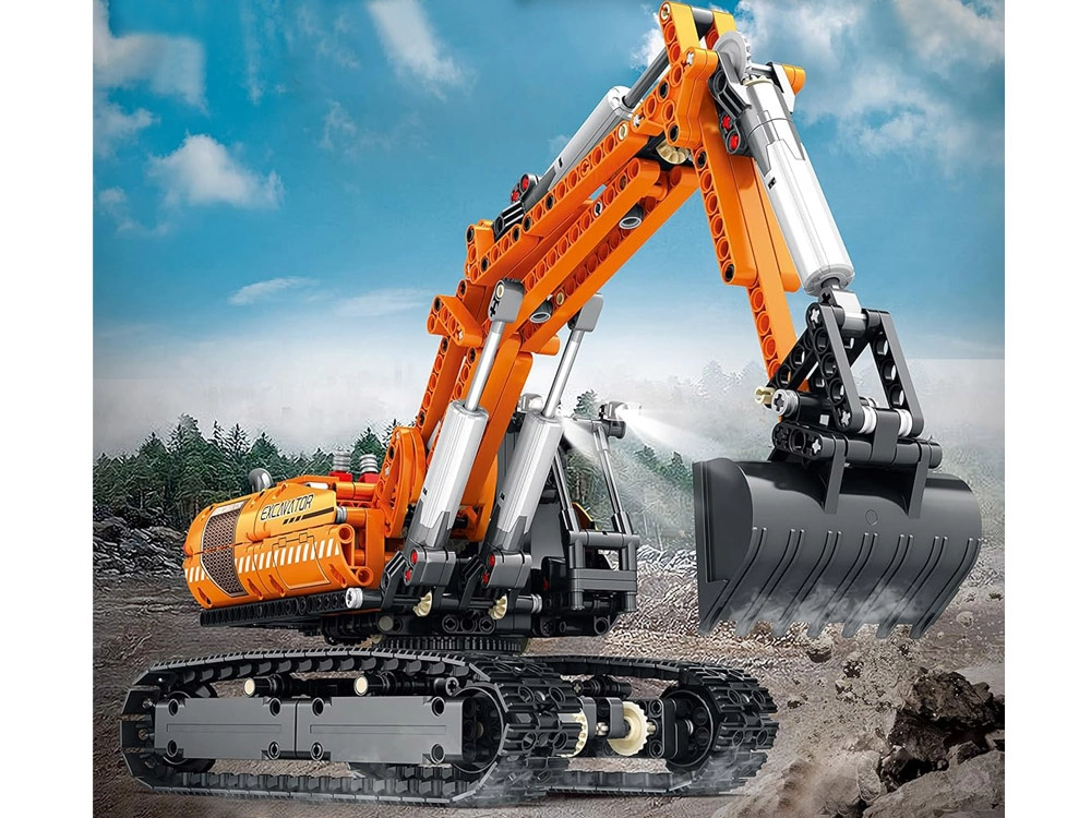 Ta zestaw klocków łączy kreatywne budowanie z realistycznymi funkcjami maszyn budowlanych. Po złożeniu otrzymasz solidną koparkę gąsienicową ze szczegółowym mechanizmem ramienia, łyżki i obrotu całej nadbudowy o 360°. Sterowanie jest intuicyjne – albo za pomocą pilota 2,4 GHz, albo wygodnie z telefonu poprzez aplikację Bluetooth.