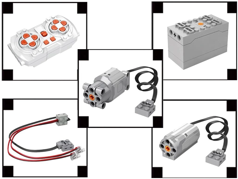 - Klocki, pilot zdalnego sterowania, akumulator, kabel USB, naklejki, ilustrowana instrukcja