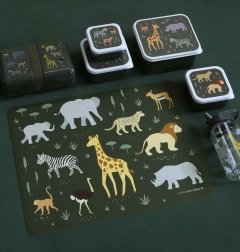 Rozwesel dziecięcy stół radosną podkładką ze zwierzętami sawanny od A Little Lovely Company. Ciemnoszare wykończenie świetnie pasuje do różnych wnętrz, a dzięki antypoślizgowemu wykończeniu podkładka stabilnie trzyma się na miejscu. Duży format zapewnia dość miejsca na talerz, sztućce i szklankę, a także na drobne prace plastyczne.