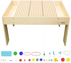 Ze stołem STEM MASTERKIDZ dzieci łatwo zrozumieją zasady przekładni, rotacji i przenoszenia ruchu. Stabilna drewniana konstrukcja z zaokrąglonymi krawędziami zapewnia bezpieczne użytkowanie, a perforowany blat i pionowe panele umożliwiają budowanie w 2D i 3D. Dzięki bocznym pojemnikom dzieci mają komponenty zawsze pod ręką i mogą szybko zmieniać oraz testować swoje pomysły.