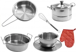 Ten realistyczny dziecięcy zestaw garnków jest idealny dla małych kucharzy, którzy chcą naśladować dorosłych i jednocześnie rozwijać swoje umiejętności. Wysokiej jakości metalowe wykonanie wygląda jak prawdziwe naczynia i doskonale uzupełni każdą dziecięcą kuchnię. Świetny pomysł na prezent – zapakowany w pudełko upominkowe.