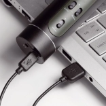 Obsługa jest intuicyjna – wystarczy włączyć, połączyć i śpiewać. Zintegrowany akumulator 1500 mAh oferuje długi czas pracy – do 14 godzin przy 50% głośności, więc zabawa może trwać całą noc. W zestawie znajduje się kabel USB do ładowania, kabel audio oraz instrukcja.