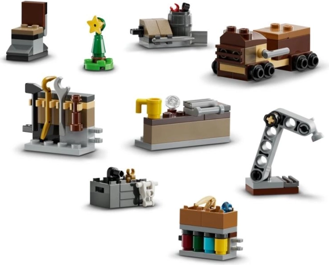 Zestaw oferuje barwny miks: minifigurki C-3PO, Jawa (edycja świąteczna) i Babu Frik, pięć samodzielnych figurek droidów oraz osiem konstrukcyjnych droidów do ekspozycji i zabawy. Nie brakuje minimodeli warsztatu, łączonego wózka i żurawia Jawów, pudełek z częściami zamiennymi ani stylowej choinki.