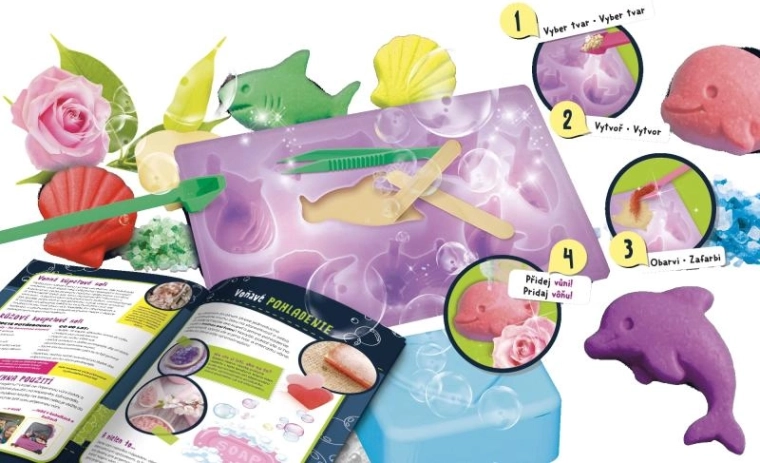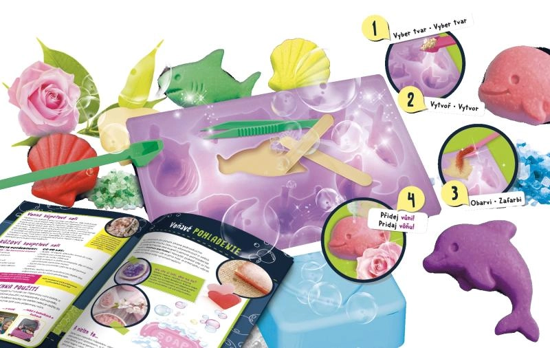 Wyrób mydeł rozwija kreatywność, motorykę małą i wspiera percepcję sensoryczną. Zestaw nadaje się do rodzinnego tworzenia, projektów szkolnych i weekendowych warsztatów. Wystarczy roztopić, zabarwić, zapachnić, wlać do foremek i pozostawić do stężenia.