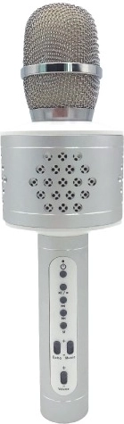 Bezprzewodowy mikrofon karaoke z Bluetooth jest idealny na domowe imprezy i śpiewanie w podróży. Oferuje proste połączenie przez Bluetooth, AUX lub kartę TF, wydajne głośniki 2×3 W, regulację głośności, muzyki i echa oraz długą żywotność do 14 godzin. Srebrne wykończenie wygląda elegancko i zapewnia świetną zabawę dla całej rodziny.