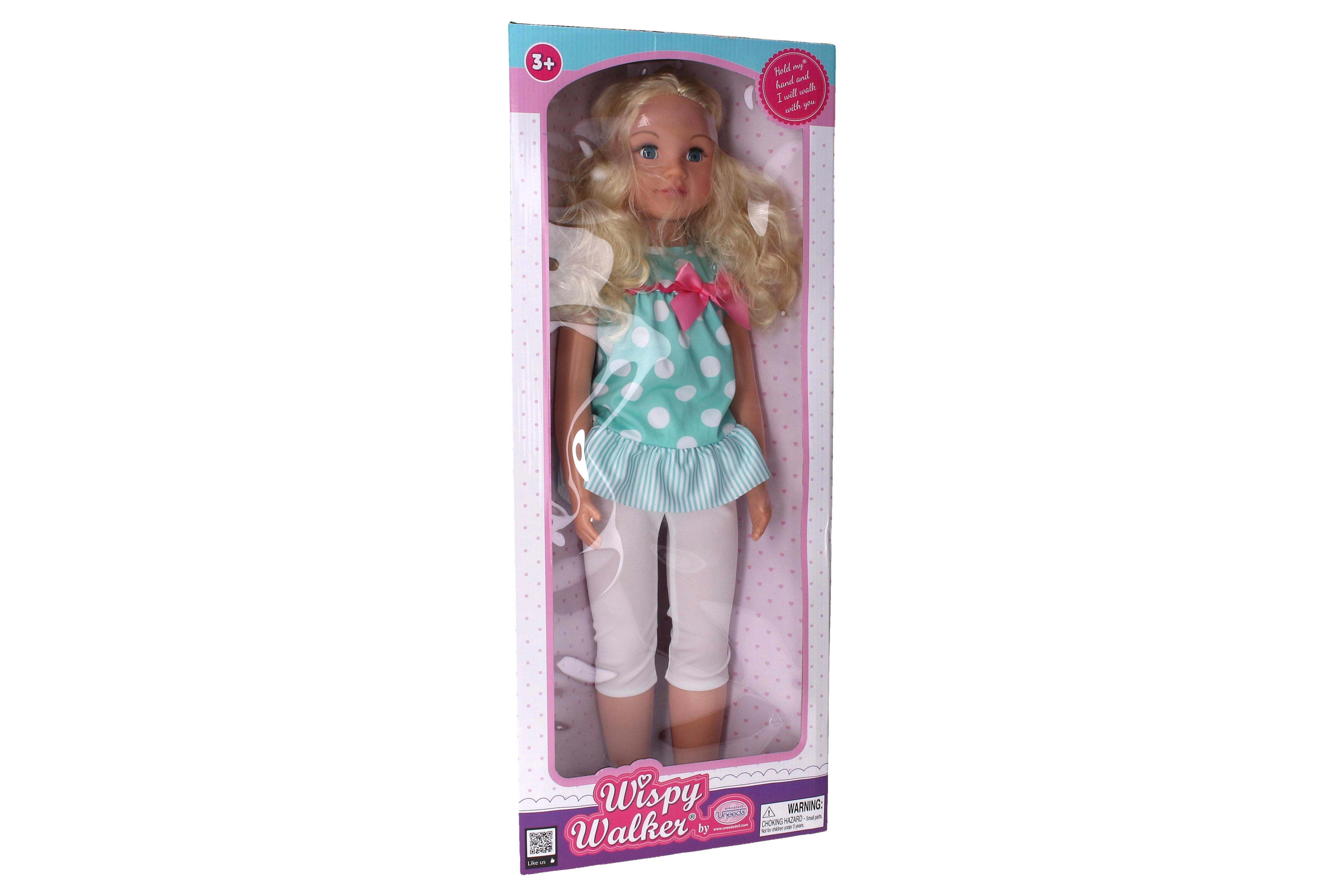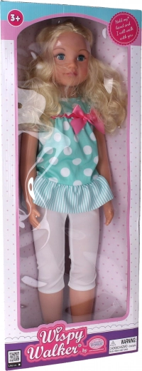 Urocza chodząca lalka z elegancką kokardą zachwyci każde dziecko. Dzięki wysokości 70 cm sprawia realistyczne wrażenie i ma mrugające oczy, które dodają zabawie autentyczności. Świetny wybór do kreatywnej zabawy i rozwoju wyobraźni.