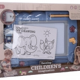 Odkryj nieskończoną zabawę z magiczną tablicą do rysowania o średnicy 33 cm. Dzieci mogą rysować magnetycznym długopisem, tworzyć wzory za pomocą stempli i jednym przesunięciem suwaka błyskawicznie wszystko zmazać. Idealna do rozwijania motoryki małej, wyobraźni i cierpliwości – bez papieru i bez bałaganu.