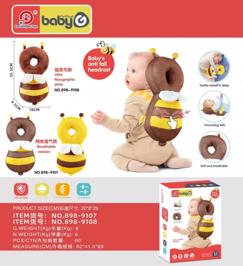 Odkryj praktycznego pomocnika na okres nauki chodzenia. Ta ochronna poduszka w kształcie pszczółki amortyzuje upadki i pomaga chronić główkę dziecka przed uderzeniami. Dzięki niskiej wadze i ergonomicznemu wykonaniu nie ogranicza ruchów, a dziecko bez trudu nosi ją jak mały plecak.