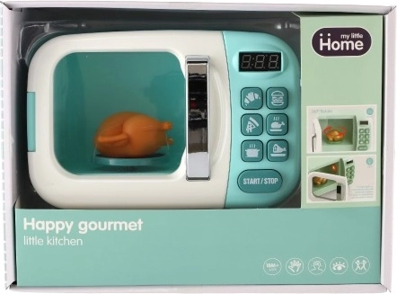 Kuchenka mikrofalowa symuluje prawdziwe funkcje z realistycznymi efektami dźwiękowymi i świetlnymi oraz obracającym się kurczakiem.