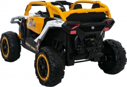 Stylowy dziecięcy elektryczny samochód w żółto-białym kolorze oferuje realistyczne wrażenia z jazdy w terenie. Dzięki napędowi 4x4, szerokim terenowym kołom i solidnej konstrukcji jest idealny do zabawy na świeżym powietrzu. Światła LED, kierownica z prostą obsługą i dwa siedzenia zapewniają bezpieczną i przyjemną jazdę dla małych kierowców.
