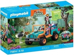 Kolorowy samochód terenowy PLAYMOBIL z edycji Animals & Friends zaprasza dzieci na przygodową jazdę przez dżunglę. Do pojazdu mieszczą się cztery figurki, a swoje miejsce mają tu także urocze zwierzątka – panda, lemur, koala, struś i kakadu. Z bogatym wyposażeniem, cieniem liściastego drzewa i ptasim gniazdem pobudza wyobraźnię i rozwija kreatywną zabawę.