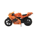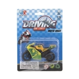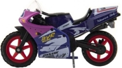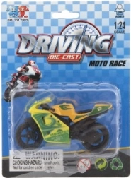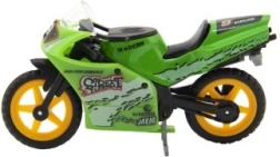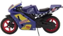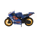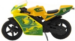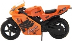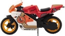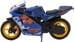 Model wyścigowego motocykla mierzy 8 cm i jest wykonany z kombinacji metalu i plastiku. Świetny dla dzieci od 3 lat, wspiera kreatywną i imaginacyjną zabawę. Motocykl jest pakowany na karcie i dostępny w kilku różnych kolorach.