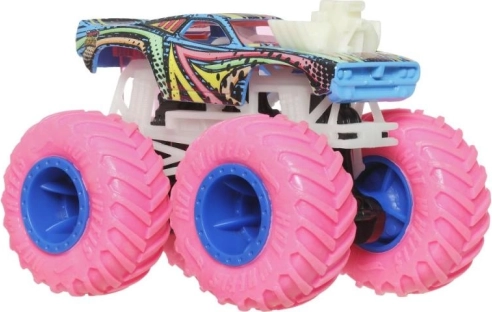 Zgaś światło i zabawa się zaczyna! Metalowe modele Hot Wheels Monster Trucks w skali 1:64 mają ogromne koła, wyrazisty design i świecą w ciemności dla jeszcze intensywniejszych uderzeń, skoków i kraks. Świetne dla dzieci i kolekcjonerów; poszczególne modele sprzedawane są oddzielnie i mogą różnić się kolorem oraz wyglądem.