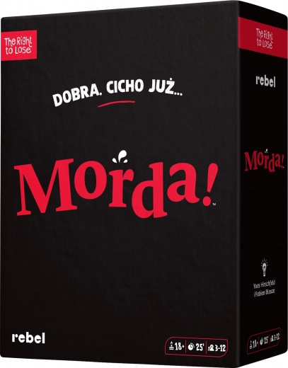 Morda! to żwawa i bezkompromisowo zabawna gra, w której prowadzący odczytuje prowokacje, a pozostali starają się rozbawić grupę i lidera jak najzabawniejszą odpowiedzią. Gdy trafisz w jego poczucie humoru, zdobywasz punkty. Gdy nie – rozlega się „Morda!” i odsłaniasz kolejny poziom uciszenia. Proste zasady, krótki czas rozgrywki i mnóstwo kart sprawiają, że chętnie będziesz do niej wracać.