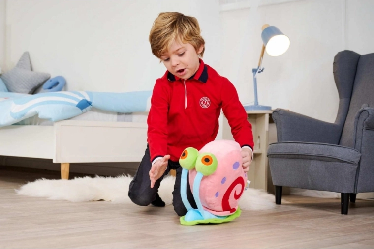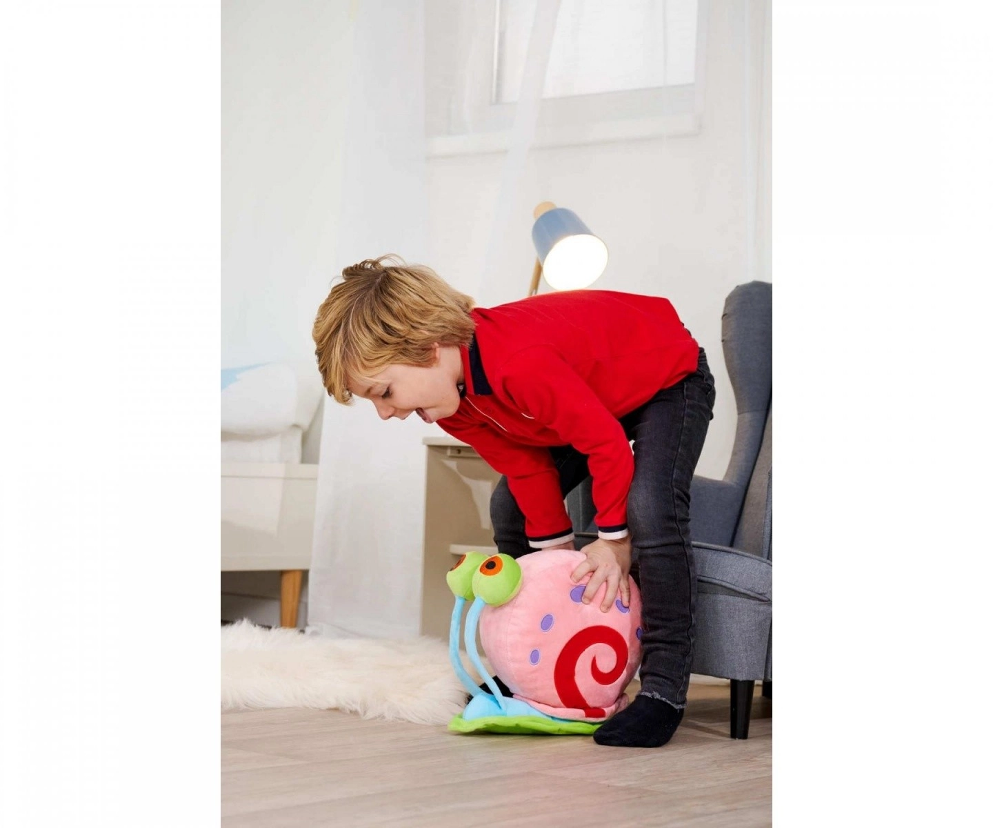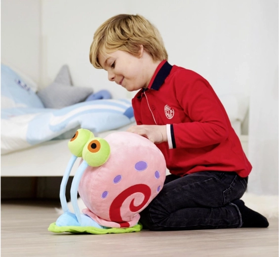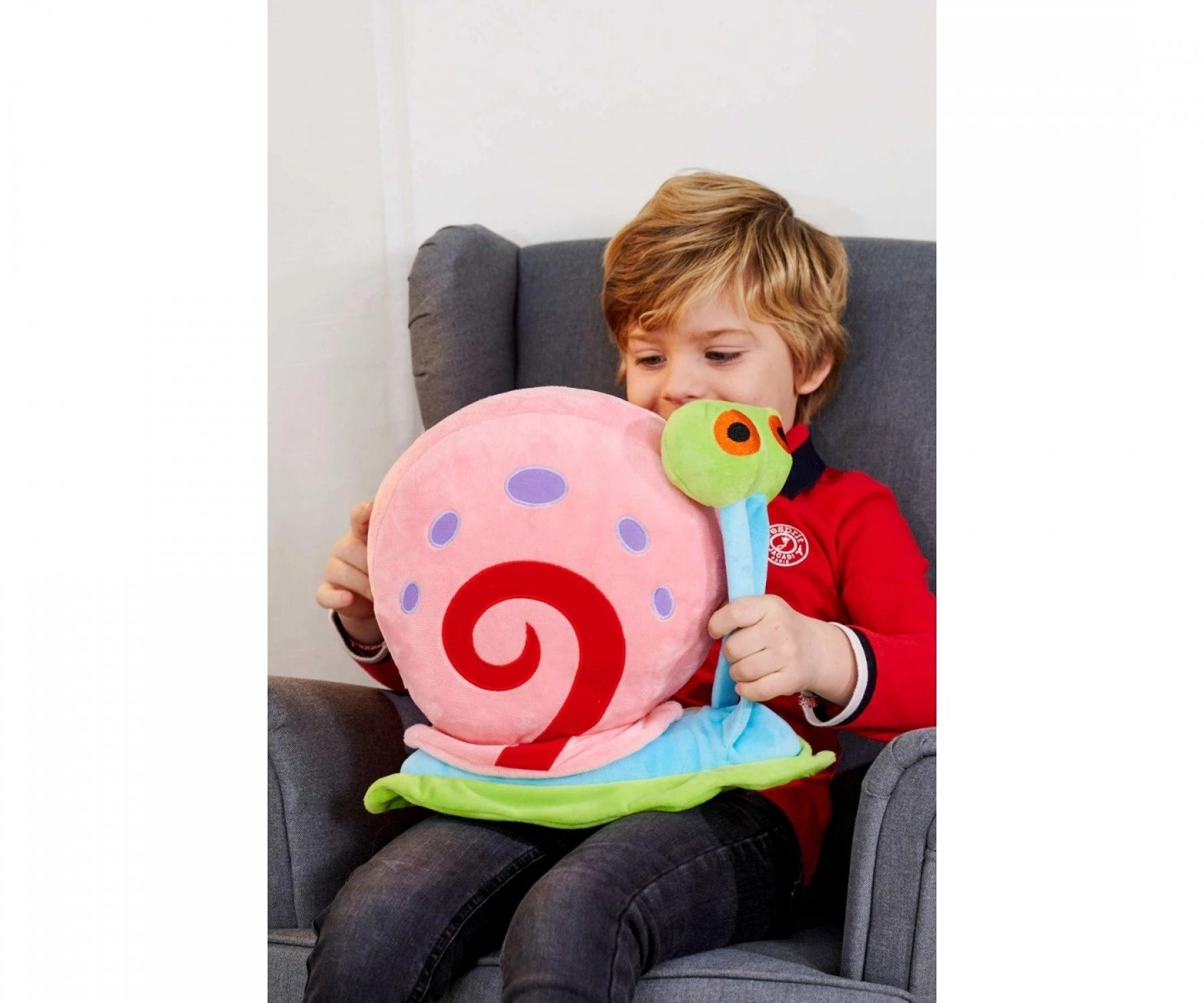 Ulubieniec SpongeBoba, ślimak GARY, pojawia się jako puchata pluszowa zabawka z wyrazistymi kolorami, dużymi oczami i miękką powierzchnią. Dzięki przyjemnemu w dotyku materiałowi doskonale sprawdzi się do kojących uścisków, domowej zabawy oraz jako dekoracja pokoju dziecięcego.