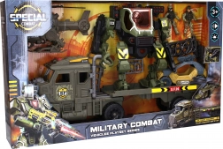 W zestawie znajduje się solidny wojskowy ciągnik (60 cm) z kołami swobodnie toczącymi się, szczegółowy helikopter do szybkich przerzutów, buggy z karabinem maszynowym do akcji ofensywnych oraz dwie figurki pilotów. Nie brakuje umocnień i wyposażenia dla żołnierzy, które uzupełnią każdą misję. Robot jest gotowy do akcji od razu po wyjęciu z pudełka – baterie w zestawie.