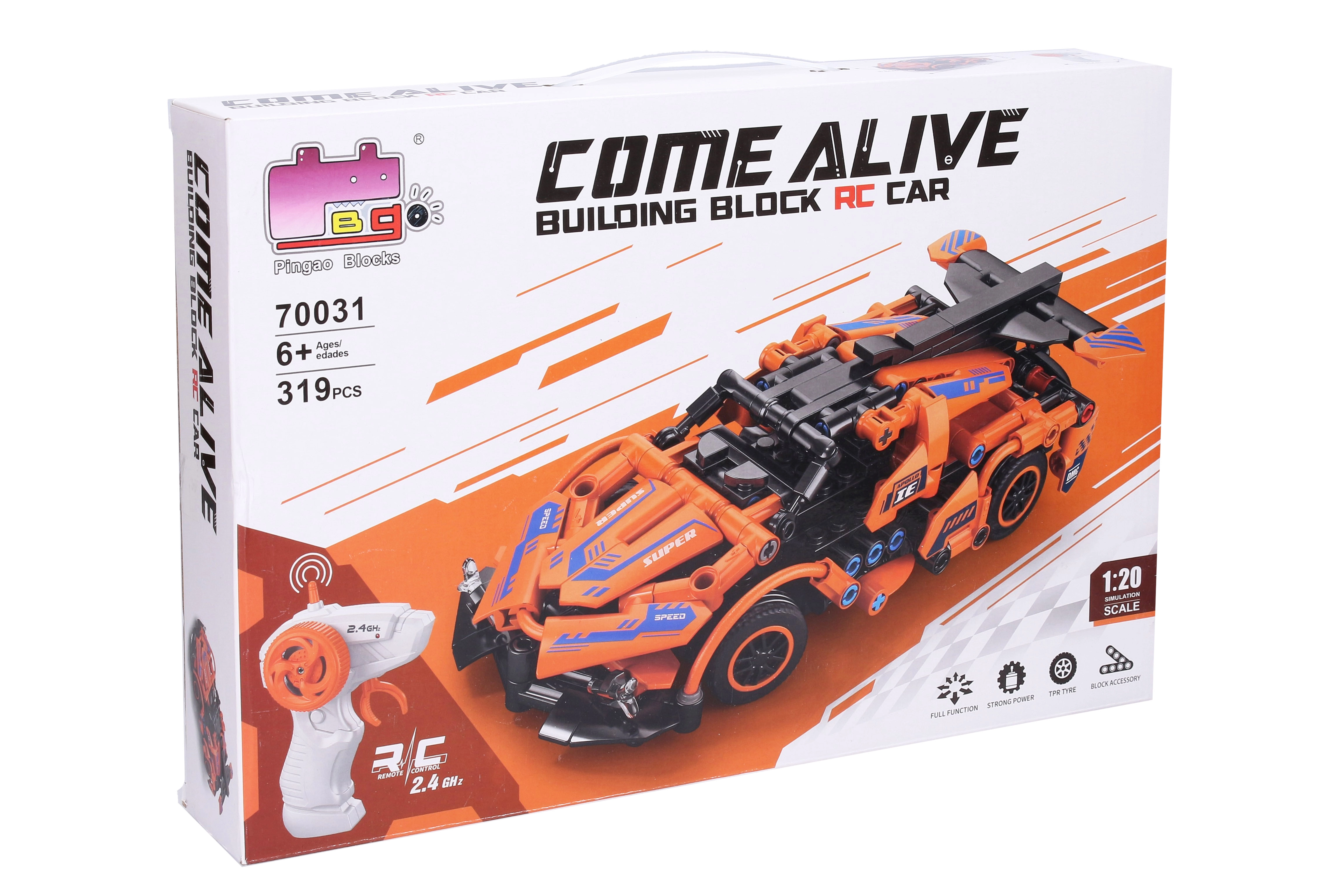 Złóż własne auto RC w atrakcyjnym pomarańczowym kolorze i ciesz się jazdą na zdalne sterowanie. Zestaw zawiera 319 elementów, pistoletowy kontroler z częstotliwością 2,4 GHz, pakiet baterii Li‑ion 3,7 V 350 mAh oraz kabel USB do ładowania. Idealny dla młodych konstruktorów i miłośników techniki.