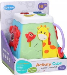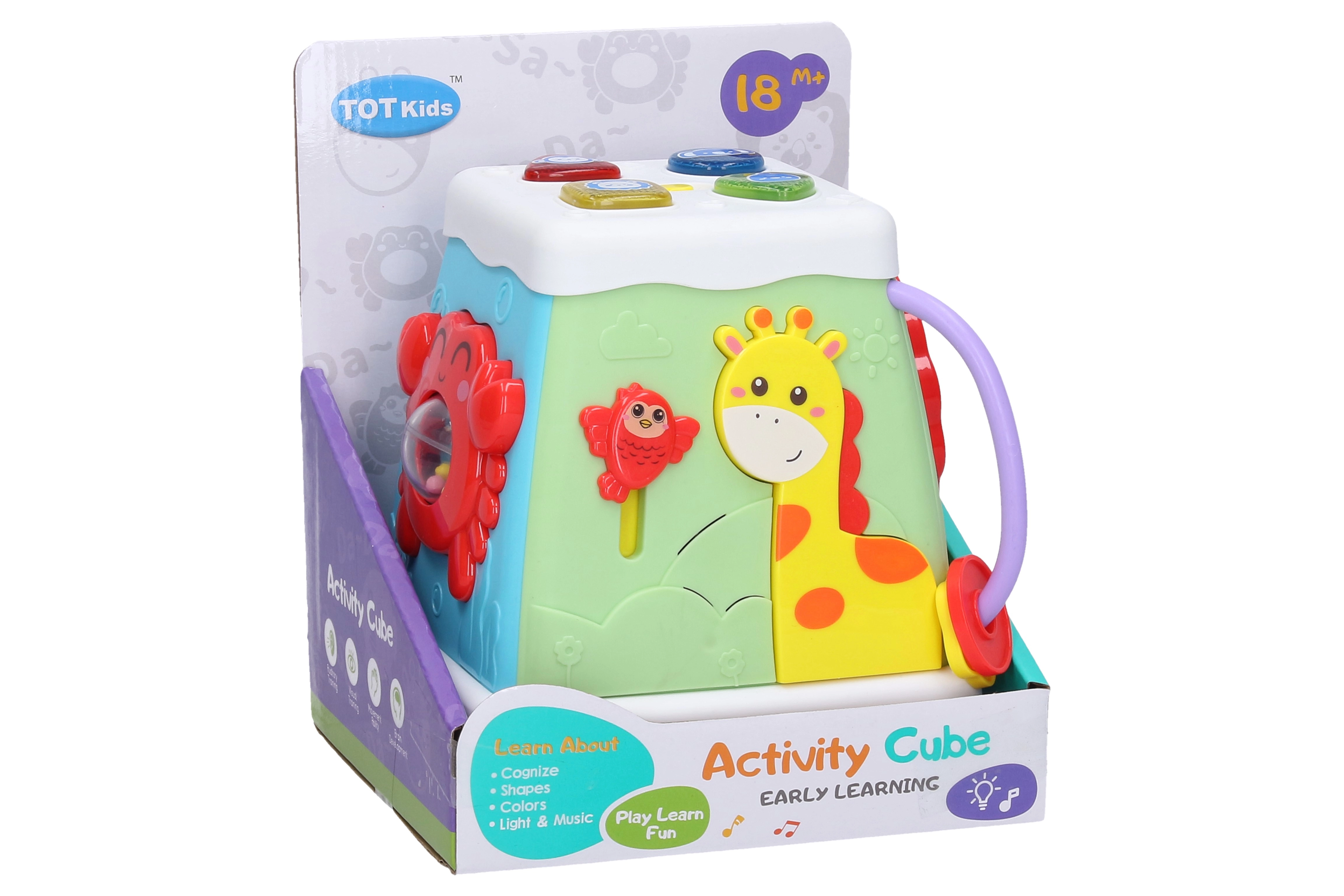 Ta interaktywna kostka dostarcza dzieciom mnóstwo bodźców i zabawy. Dzięki efektom świetlnym i dźwiękowym wspiera rozwój wzroku, słuchu i koordynacji, a kompaktowy wymiar 13 cm świetnie pasuje do dziecięcych rączek. Za pomocą przycisku on/off efekty można łatwo włączyć lub wyłączyć.