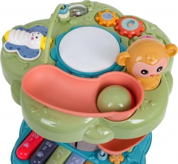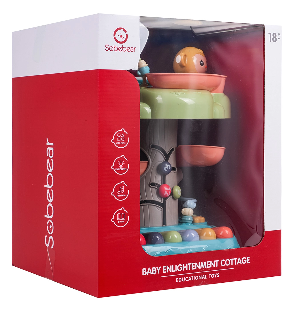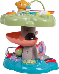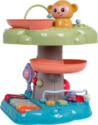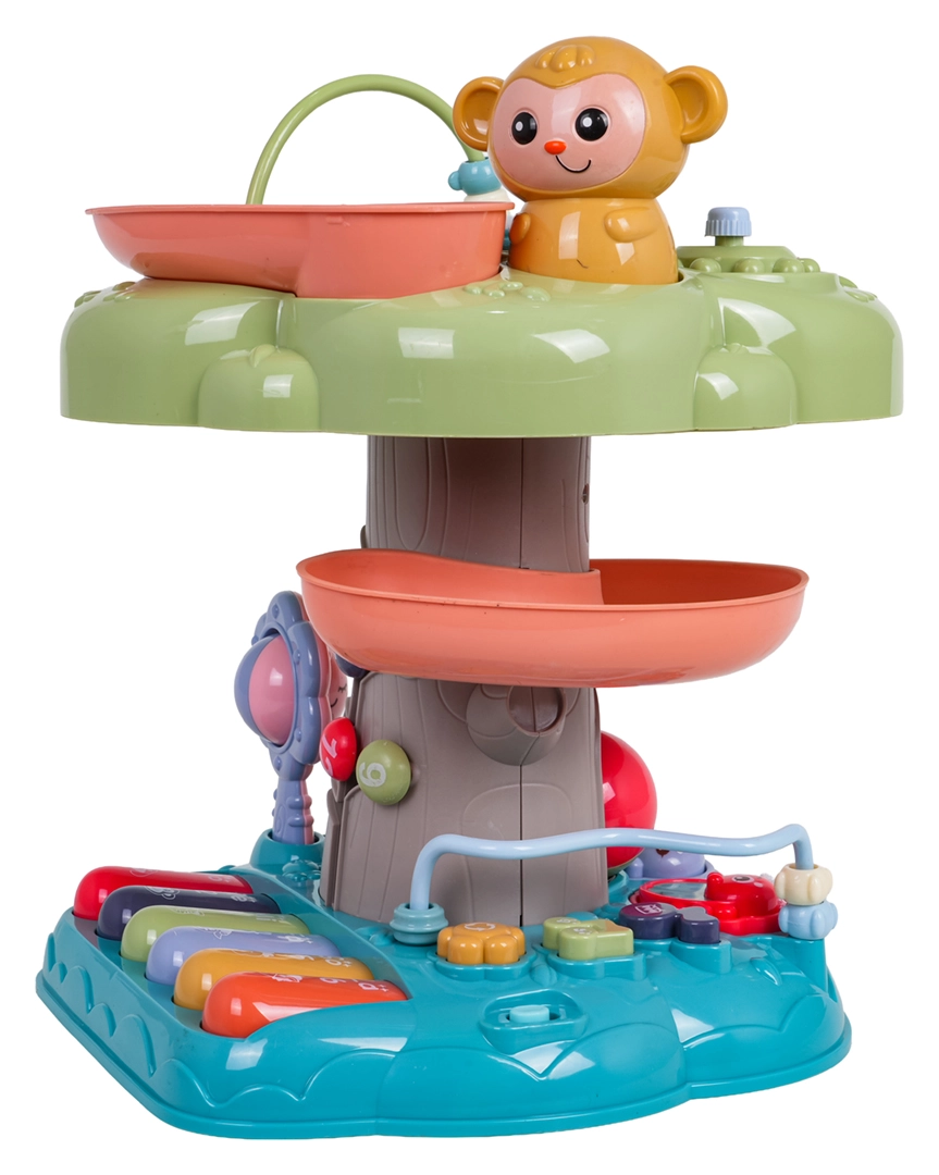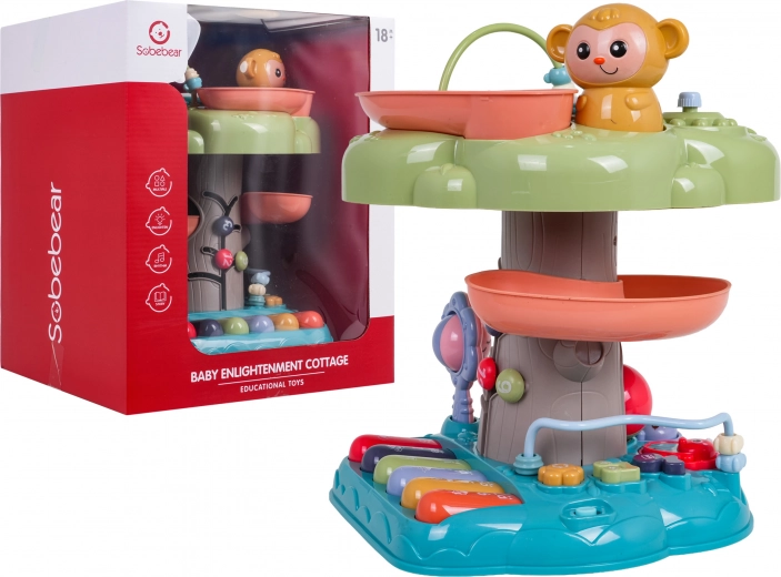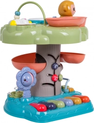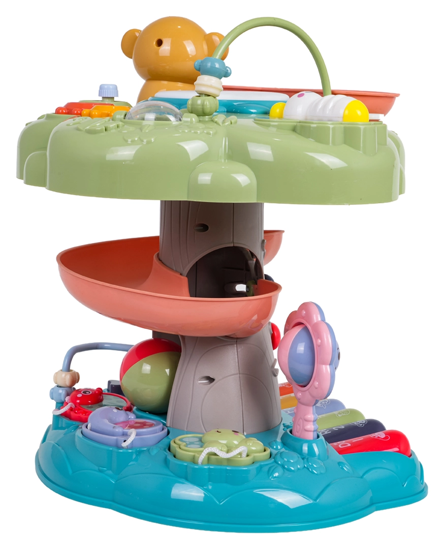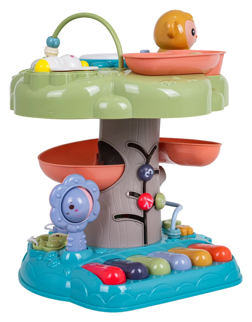 Interaktywny stromek to idealna edukacyjna zabawka dla najmłodszych. Dzieci zachwyci podświetlany muzyczny bębenek na szczycie, pianinko z czterema trybami (liczby, melodie, zwierzęta i ich odgłosy, dźwięki) oraz spiralny tor dla piłeczek, po którym kulki z radością staczają się w dół. Kolorowe elementy, światła i melodie wspierają rozwój sensoryczny oraz naukę przyczyn i skutków.
