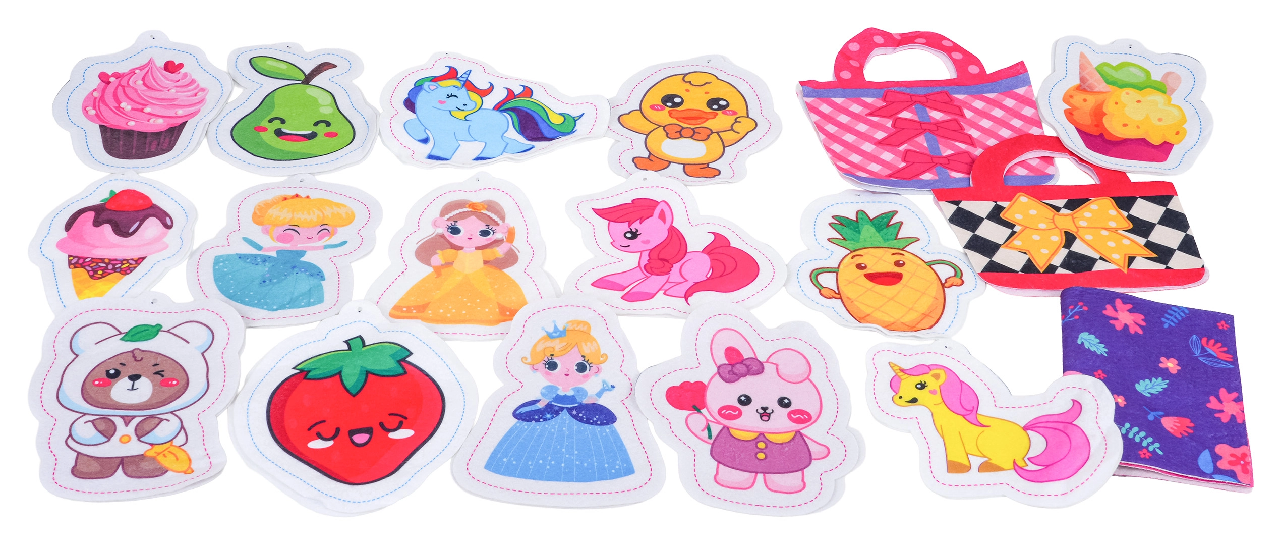 W zestawie znajdują się filcowe wykroje na torebki, elementy tekstylne, szablony do tworzenia pluszowych ozdób, wypełnienie, łańcuszki kulkowe oraz nożyczki – wszystko, czego dzieci potrzebują do tworzenia własnych dodatków i uroczych breloczków. Zabawa wspiera koordynację, cierpliwość i twórczość.