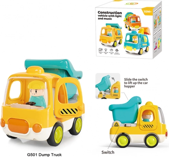 Ta kolorowa wywrotka to idealne pierwsze autko dla najmłodszych kierowców. Dzięki wesołym melodiom, dźwiękowi uruchamiania silnika i klaksonowi dziecko zanurzy się w realistycznej zabawie, a migający przycisk wspiera percepcję wzrokową. Solidna konstrukcja z wysokiej jakości plastiku bez ostrych krawędzi gwarantuje bezpieczną i długotrwałą zabawę.