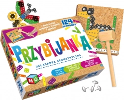 Na korkowej tablicy za pomocą pinezek mocuje się metalowe elementy i dopełnia motywy z użyciem drewnianego młotka. Dzieci mogą tworzyć według broszurki z pomysłami lub całkowicie dowolnie.