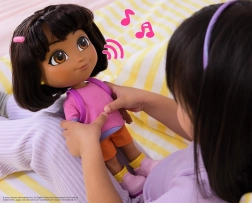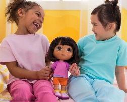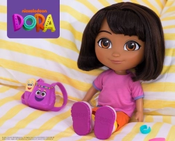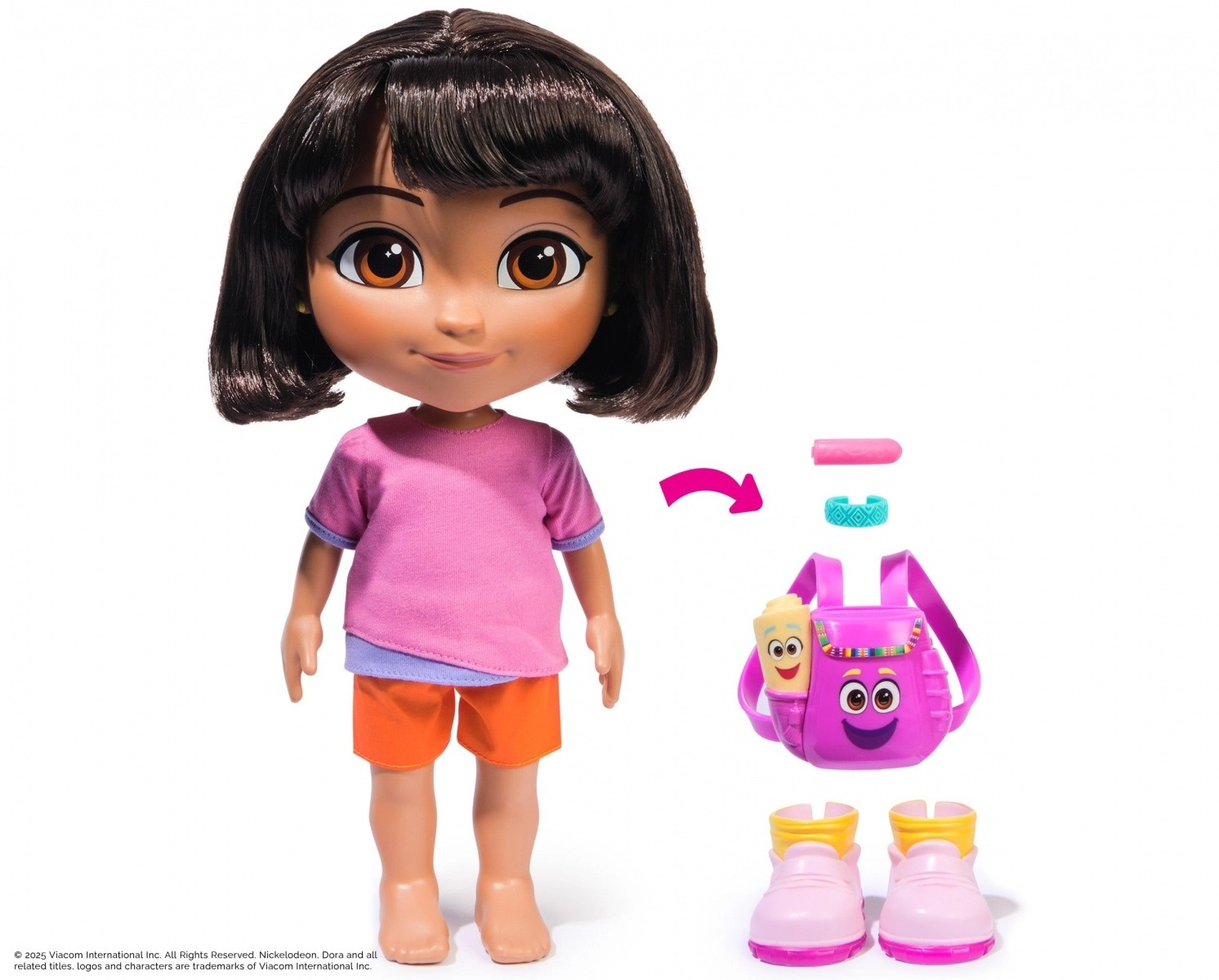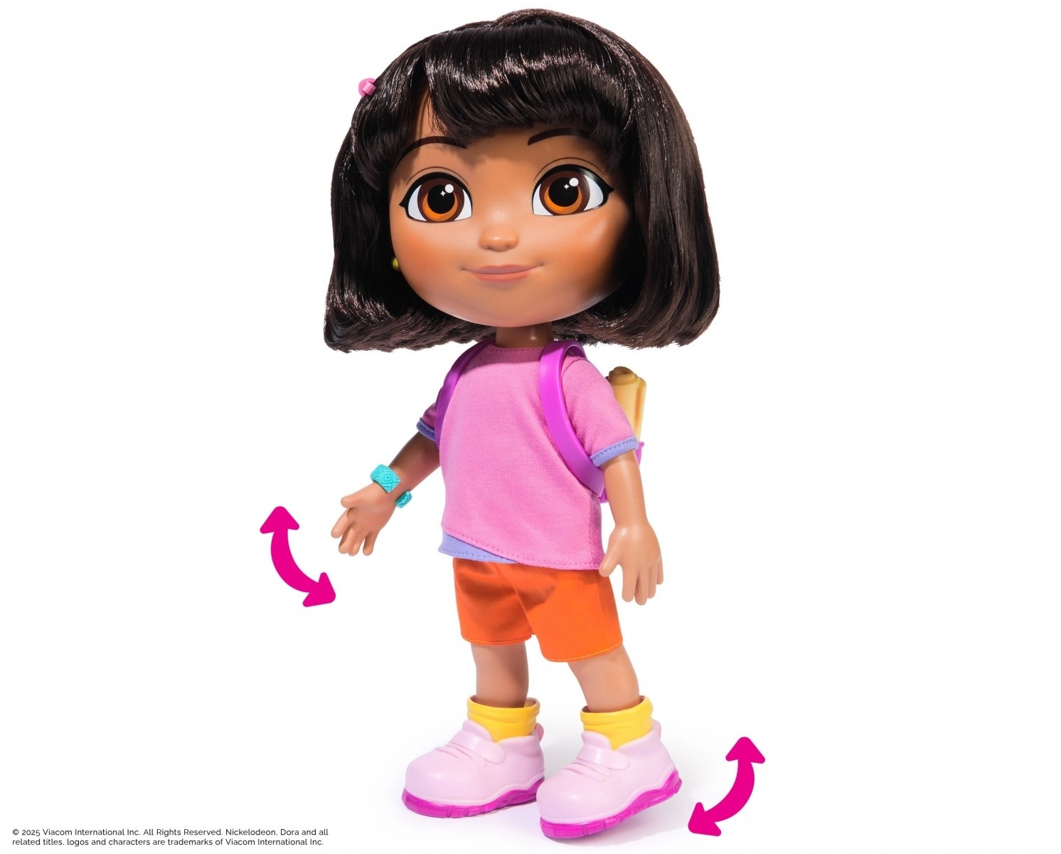 Wejdź do świata przygód z lalką DORA, która śpiewa, mówi po angielsku i wydaje wesołe dźwięki po naciśnięciu brzuszka. Dzięki realistycznym, miękkim włosom idealnie nadaje się do czesania i stylizacji, a zdejmowane buty i akcesoria wspierają kreatywne przebieranie i opowiadanie własnych historii.