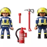 Dwóch dzielnych strażaków z zestawu PLAYMOBIL Duo Pack jest gotowych do akcji. Dzięki profesjonalnemu wyposażeniu, takim jak topór, latarka i gaśnica, poradzą sobie z każdym pożarem i akcją ratunkową. Ruchome osłony na kaskach zapewniają lepszą widoczność i szybką reakcję. Idealne do kreatywnej zabawy i jako uzupełnienie kolekcji.