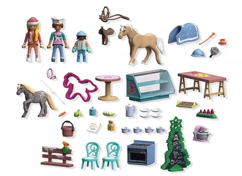 Odkryj świat PLAYMOBIL Horses of Waterfall, gdzie świąteczny nastrój spotyka się z urokiem jeździeckiego życia. W kawiarni Ellie dzieci będą się świetnie bawić przy pieczeniu pierniczków i ciasteczek, dekorowaniu wnętrza i radosnym serwowaniu smakołyków. Otwierany piekarnik i szklana witryna dodają zabawie autentyczności, a pupile i końskie przysmaki podkreślają klimat stajni.