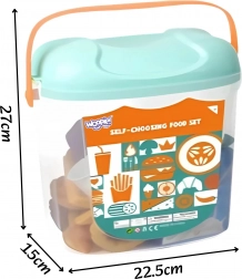 Bogaty zestaw słodkości i deserów w wiaderku marki WOOPIE ucieszy wszystkich małych kucharzy. Znajdziesz w nim 40 realistycznych elementów – od donutów, ciasteczek, precli, muffinów i lodów po dodatki śniadaniowe i napoje. W zestawie są także filiżanki, talerzyki i sztućce dla jeszcze bardziej autentycznej zabawy. Całość mieści się w przezroczystym wiaderku z uchwytem ułatwiającym przenoszenie i sprzątanie. Świetne do zabawy w kawiarnię, restaurację czy popołudniową herbatkę – rozwija kreatywność, wyobraźnię i umiejętności społeczne.