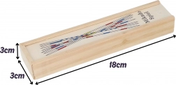 Klasyczna gra w bierki z wysokiej jakości naturalnego drewna zapewnia zabawę oraz trening cierpliwości i precyzji. Proste zasady, kolorowe oznaczenia patyczków ułatwiające punktację oraz praktyczne opakowanie sprawiają, że ten zestaw to świetny wybór dla rodzin, przedszkoli i centrów zajęć. Idealny w domu, w podróży i na piknik.