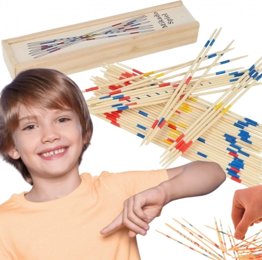 Odkryj ponadczasową grę, która rozwija małą motorykę, koncentrację i myślenie strategiczne. Drewniane bierki marki Woopie wykonane są z naturalnego drewna, a dzięki kolorowym oznaczeniom na poszczególnych patyczkach umożliwiają różne warianty punktacji i dopasowanie zasad do wieku graczy.