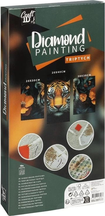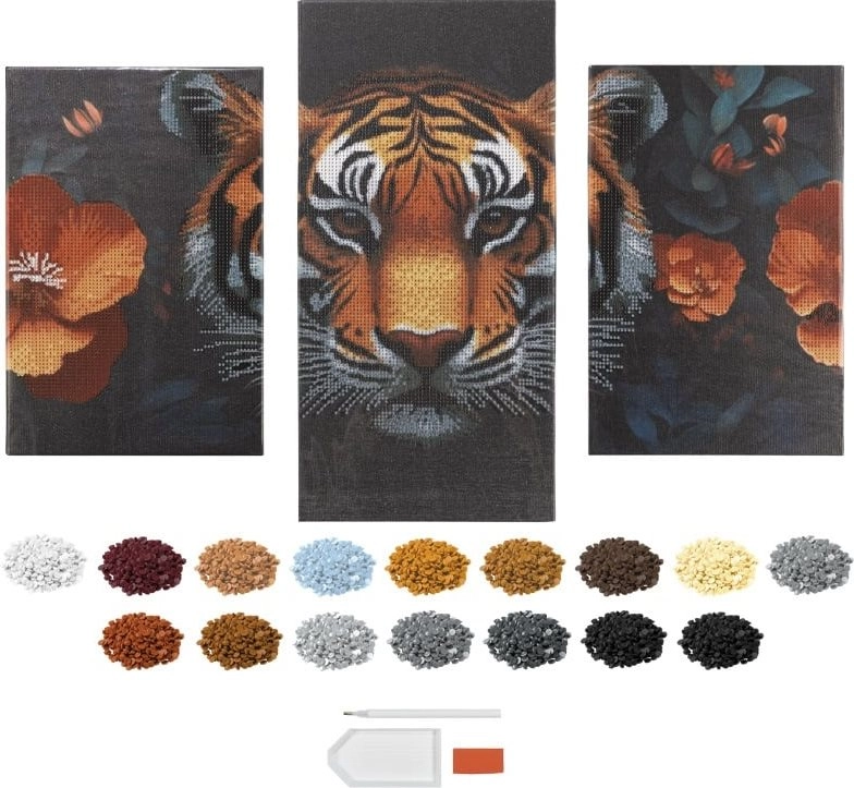 Odkryj magię diamentowego malowania i stwórz oryginalny tryptyk z motywem tygrysa, który rozświetli każde wnętrze. Każde płótno ma warstwę samoprzylepną i drukowaną legendę, dzięki czemu łatwo umieścisz koraliki we właściwym miejscu. Efektem jest luksusowo połyskujący obraz, który wyróżni się w salonie, sypialni czy pokoju dziecięcym.