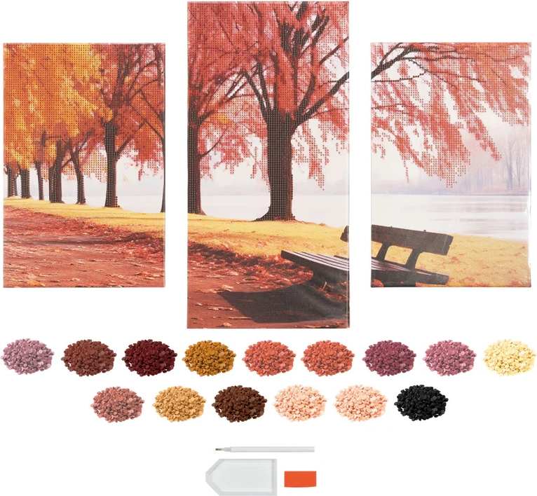 Stwórz błyszczący, trzyczęściowy obraz z motywem krajobrazu dzięki zestawowi do diamentowego malowania. Każde płótno ma warstwę klejącą i czytelną legendę, więc bez trudu umieścisz diamenciki we właściwych miejscach. Efektem jest olśniewająca dekoracja, która rozświetli każdą ścianę i przyniesie relaks, harmonię z kreatywnością oraz radość z gotowego dzieła.
