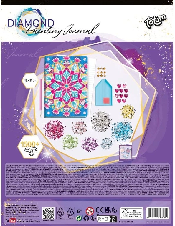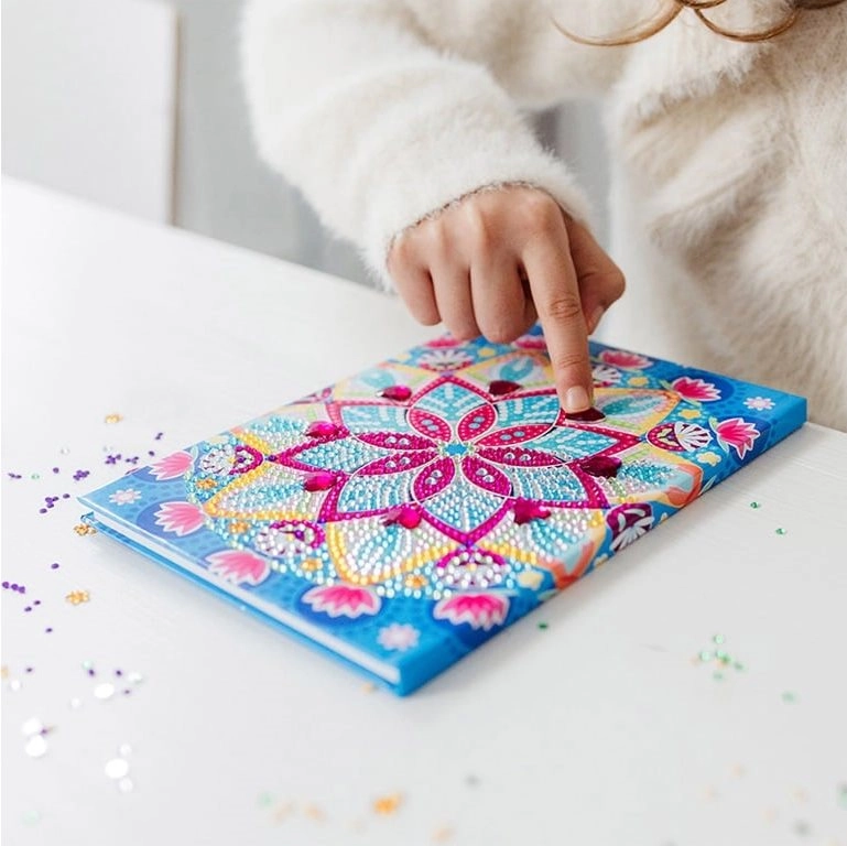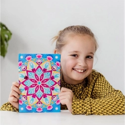 Kreatywny zestaw dla dzieci i dorosłych: liniowany notes A5 w twardej oprawie ozdobisz kolorowymi kryształkami, tworząc lśniącą mozaikę mandali. Dzięki prostemu sposobowi wykonania tworzenie jest łatwe i relaksujące. W zestawie są wszystkie niezbędne akcesoria – aplikator z lepką końcówką, wosk, tacka do sortowania oraz kolorowe kryształki.